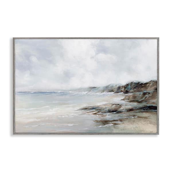 Classic Shoreline Cliffs by Luna Mavis Gray Framed Coastal Giclee Art Print 12 in. x 18 in.