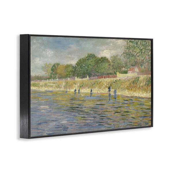 Classic Van Gogh River Landscape by one1000paintings Black Framed Nature Giclee Art Print 16 in. x 24 in.