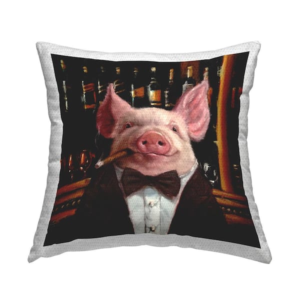 Classy Pig at Cigar Bar Farm Animal Painting Multi-Color Square Outdoor Throw Pillow
