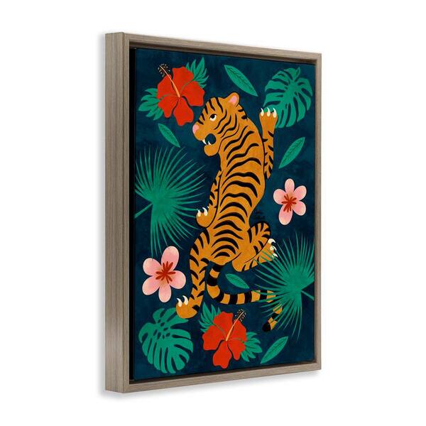Climbing Tiger Tropics by Carrie Cantwell Brown Floater Frame Animal Graphic Art Print 21 in. x 17 in.