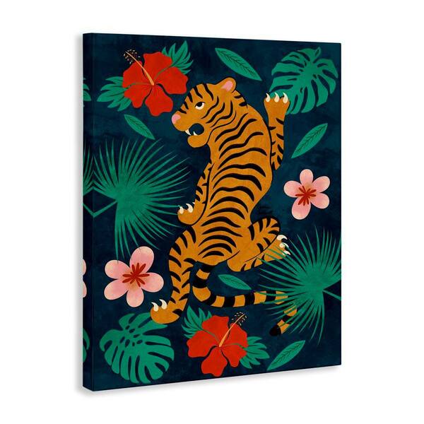 Climbing Tiger Tropics by Carrie Cantwell Unframed Animal Graphic Art Print 40 in. x 30 in.