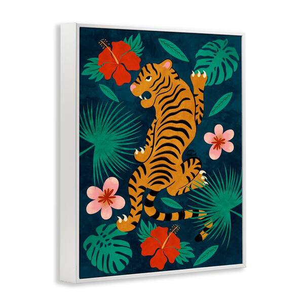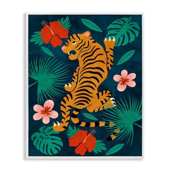 Climbing Tiger Tropics by Carrie Cantwell White Framed Animal Giclee Art Print 14 in. x 11 in.