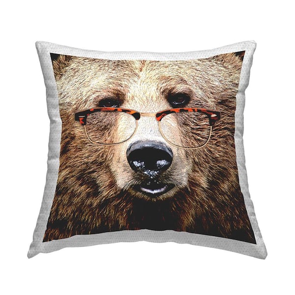 Close Up Bear Glasses Face Brown Square Outdoor Throw Pillow