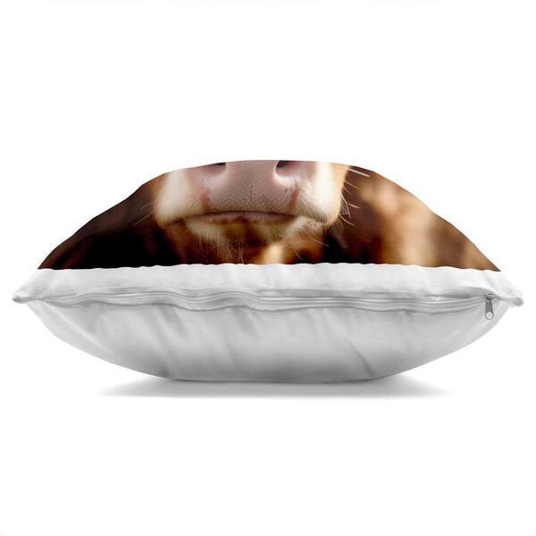 Close Up Furry Cow Portrait Brown Abstract Polyester 18 in. x 18 in. Throw Pillow