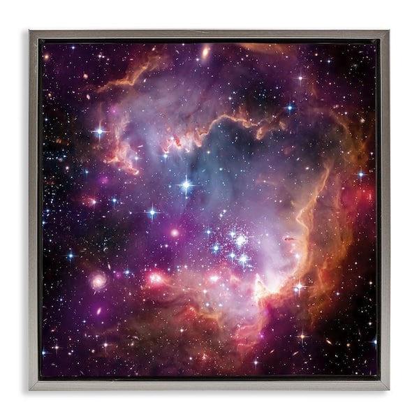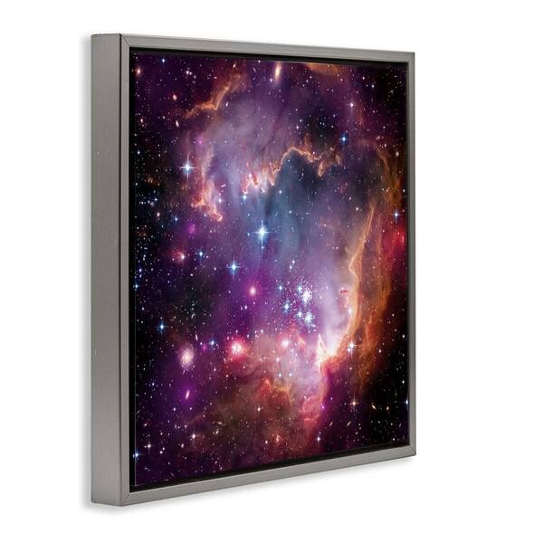 Cloud Galaxy with Stars by Wild Apple Portfolio Gray Floater Frame Nature Graphic Art Print 18 in. x 18 in.