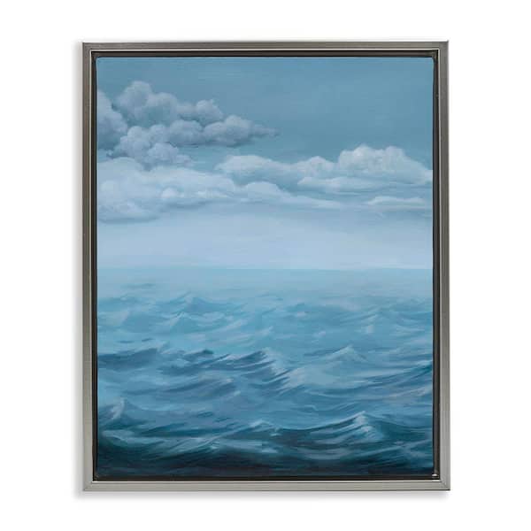 Clouds over Rough Seas by Grace Popp Gray Floater Frame Coastal Graphic Art Print 31 in. x 25 in.