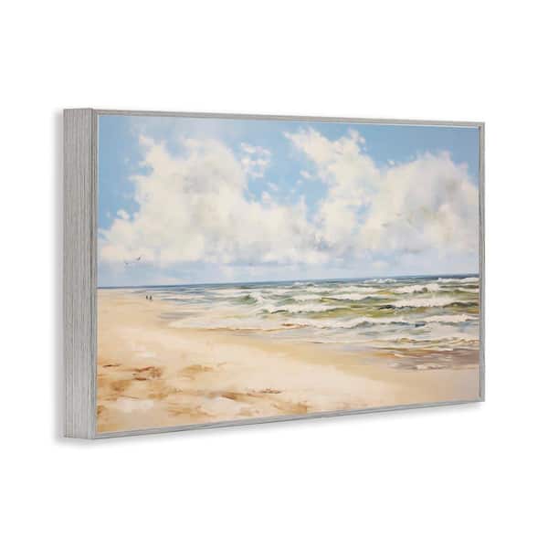 Cloudy Summer Beach by LSR Design Studio Gray Framed Coastal Giclee Art Print 12 in. x 18 in.