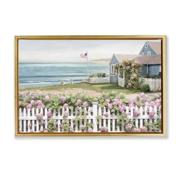Coastal Bay Cottage by Amber Sterling Gold Floater Frame Nature Graphic Art Print 21 in. x 31 in.