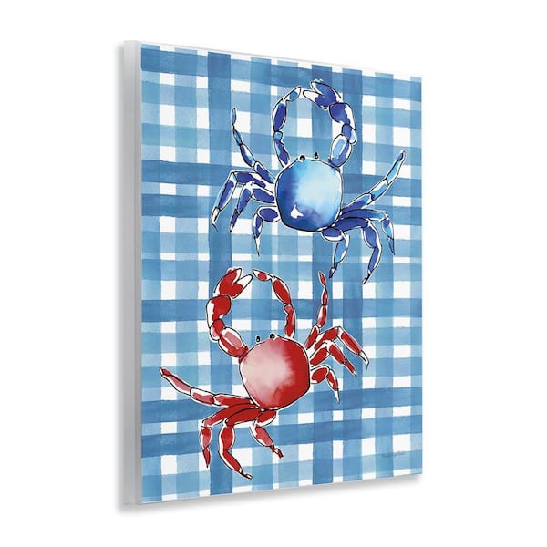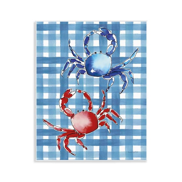 Coastal Crabs on Plaid by Mercedes Lopez Charro Unframed Animal Graphic Art Print 14 in. x 11 in.
