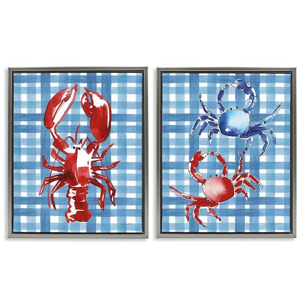 Coastal Cuisines on Plaid by Mercedes Lopez Charro 2-Pieces Gray Floater Frame Animal Graphic Art Print 31 in. x 25 in.