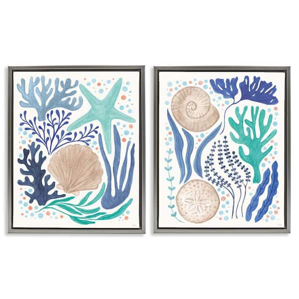 Coastal Currents Sea Life by Veronique Charron 2-Pieces Gray Floater Frame Coastal Graphic Art Print 21 in. x 17 in.