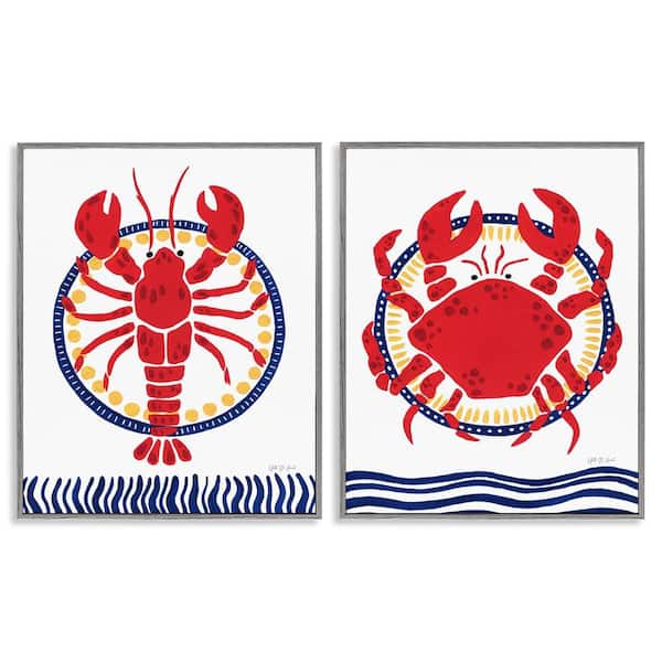 Coastal Lobster & Crab by Yvette St. Amant 2 Pieces Gray Framed Animal Giclee Art Print 30 in. x 24 in.