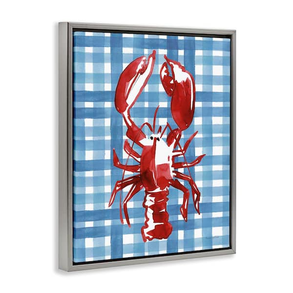 Coastal Lobster on Plaid by Mercedes Lopez Charro Gray Floater Frame Animal Graphic Art Print 31 in. x 25 in.