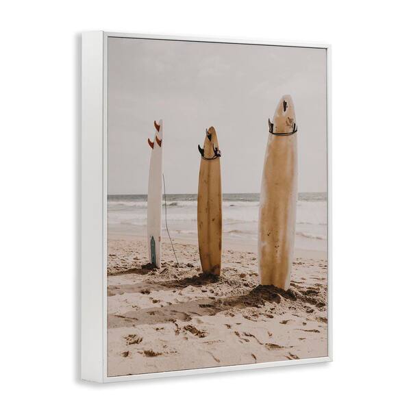 Coastal Standing Surfboards by LSR Design Studio White Framed Sports Giclee Art Print 14 in. x 11 in.