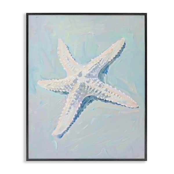 Coastal Starfish on Blue by Arlington Prints Black Framed Animal Giclee Art Print 14 in. x 11 in.