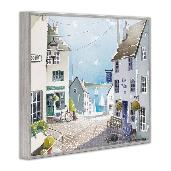 Coastal Town Seaport Sailboats by Roy Thompson 1-Piece Gray Framed Nature Giclee Art Print 30 in. x 24 in.