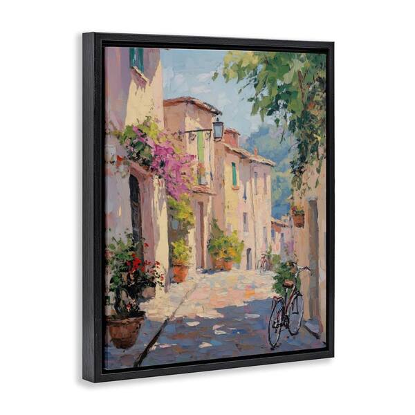 Cobblestone Path City Architecture by Nini Art Black Floater Frame Abstract Graphic Art Print 21 in. x 17 in.