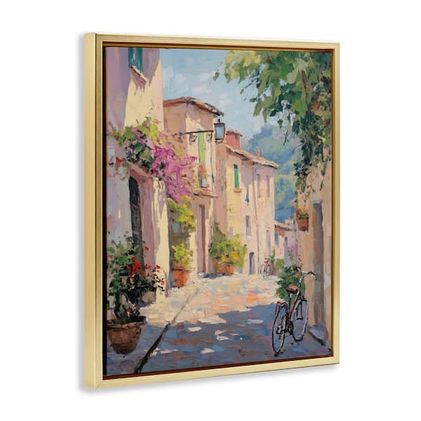 Cobblestone Path City Architecture by Nini Art Gray Floater Frame Abstract Graphic Art Print 31 in. x 25 in.