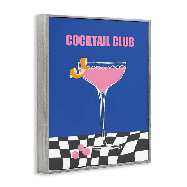 Cocktail Club on Checkered by House of Lulu Gray Framed Food Giclee Art Print 20 in. x 16 in.