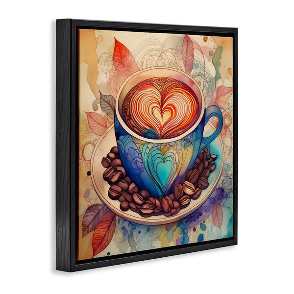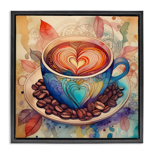 Coffee Beans and Latte by Alina Georgescu Black Floater Frame Food Graphic Art Print 18 in. x 18 in.