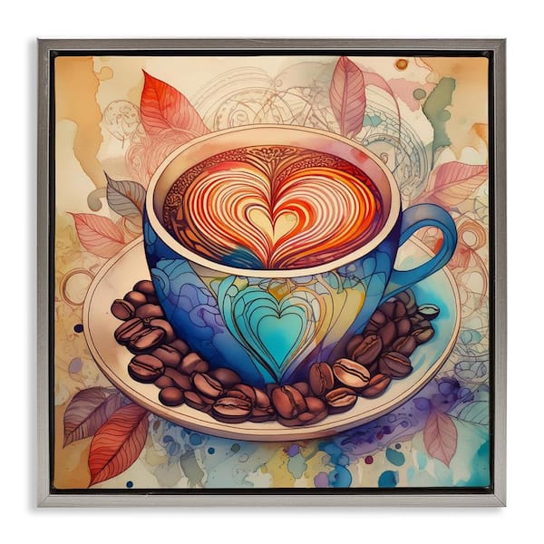Coffee Beans and Latte by Alina Georgescu Gray Floater Frame Food Graphic Art Print 18 in. x 18 in.