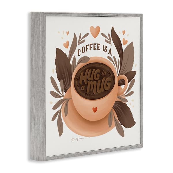 Coffee Is Hug in Mug by Gia Graham Gray Framed Food Giclee Art Print 12 in. x 12 in.