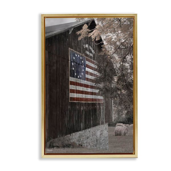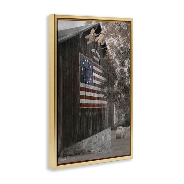 Colonial Flag on Barn by Lori Deiter Gold Floater Frame Nature Graphic Art Print 31 in. x 21 in.