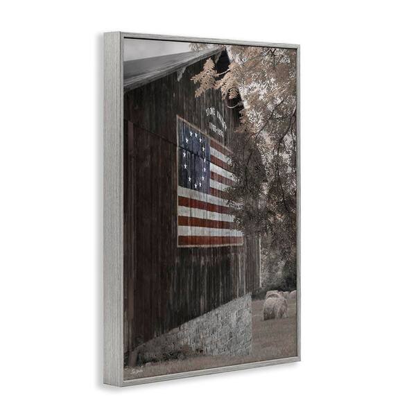 Colonial Flag on Barn by Lori Deiter Gray Framed Nature Giclee Art Print 30 in. x 20 in.