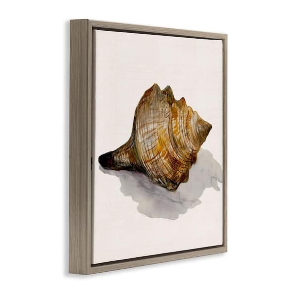 Conch Shell on Beige by Jacob Q Brown Floater Frame Coastal Graphic Art Print 25 in. x 25 in.