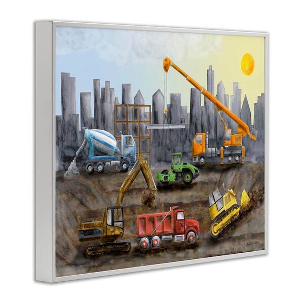 Construction Trucks Skyline by Brett Blumenthal White Framed Typography Giclee Art Print 16 in. x 20 in.