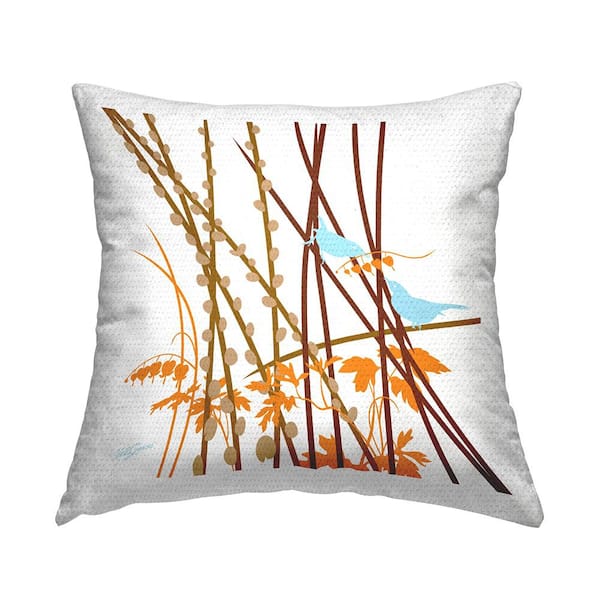 Contemporary Birds Willows Multi-Color Square Outdoor Throw Pillow