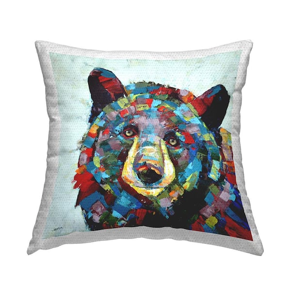 Contemporary Shapes Bear Portrait Multi-Color Square Outdoor Throw Pillow