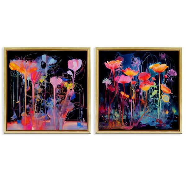 Contrasting Otherworldly Blossoms by Nuk Nalandro 2-Pieces Gold Floater Frame Abstract Graphic Art Print 25 in. x 25 in.