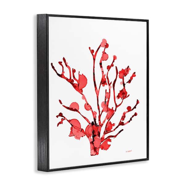 Coral With Splashes by Patti Mann Black Framed Coastal Giclee Art Print 30 in. x 24 in.