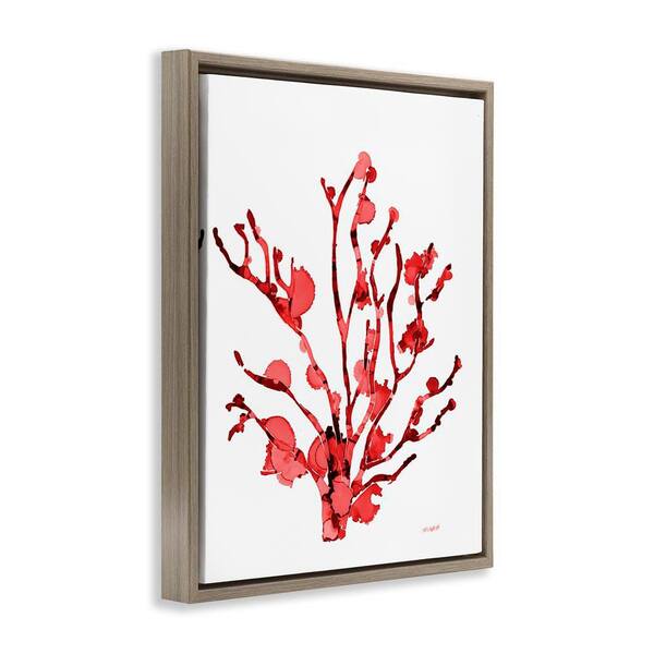 Coral With Splashes by Patti Mann Brown Floater Frame Coastal Graphic Art Print 31 in. x 25 in.