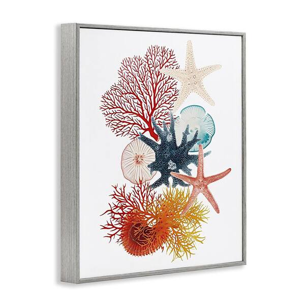Coral and Undersea Creatures by Ramona Murdock Gray Framed Animal Giclee Art Print 14 in. x 11 in.