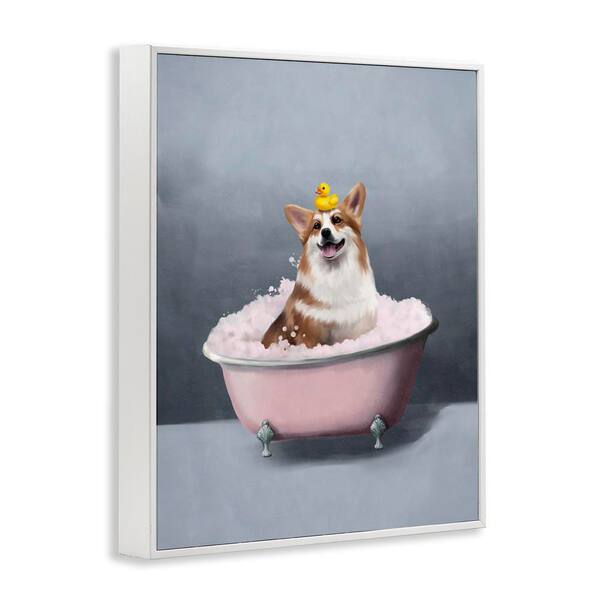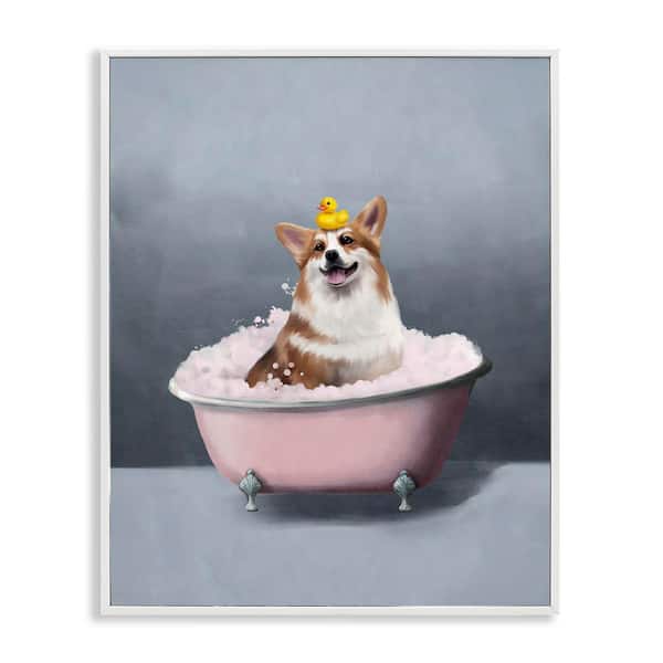 Corgi in Pink Bath by Svetlana Aleynikova White Framed Animal Giclee Art Print 20 in. x 16 in.