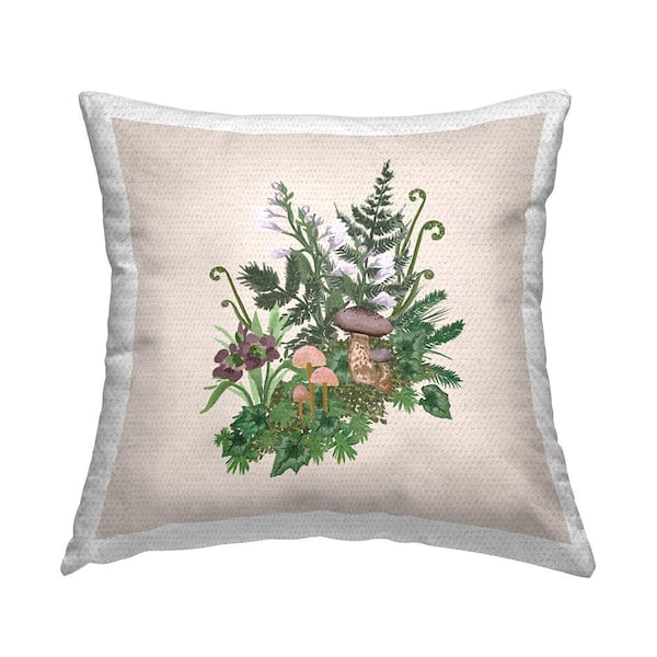 Cottage Mushroom Forest Florals Green Square Outdoor Throw Pillow