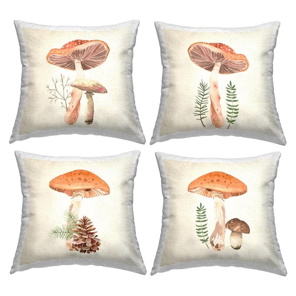 Cottage Mushrooms Forest Plants Beige Square Outdoor Throw Pillow 4-Pack