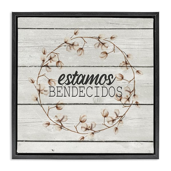 Cotton Welcome Wreath by Kim Allen Black Floater Frame Typography Graphic Art Print 25 in. x 25 in.