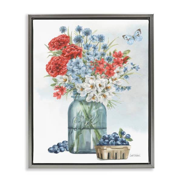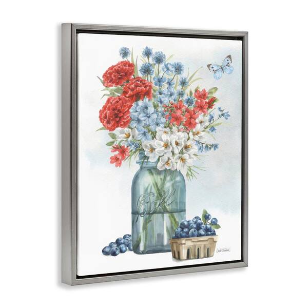Country Blossoms & Blueberries by Leslie Trimbach Gray Floater Frame Nature Graphic Art Print 31 in. x 25 in.