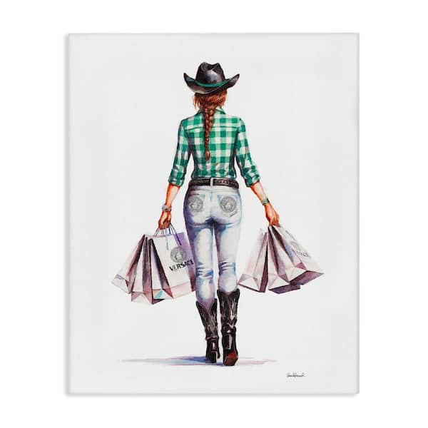 Country Cowgirl Shopper by Amanda Greenwood Unframed People Graphic Art Print 30 in. x 24 in.