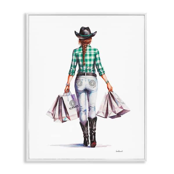 Country Cowgirl Shopper by Amanda Greenwood White Framed People Giclee Art Print 30 in. x 24 in.
