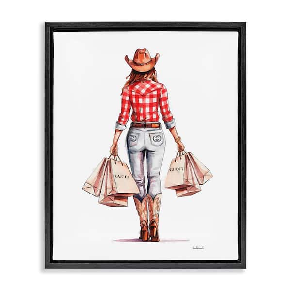 Country Cowgirl Shopping by Amanda Greenwood Black Floater Frame People Graphic Art Print 31 in. x 25 in.