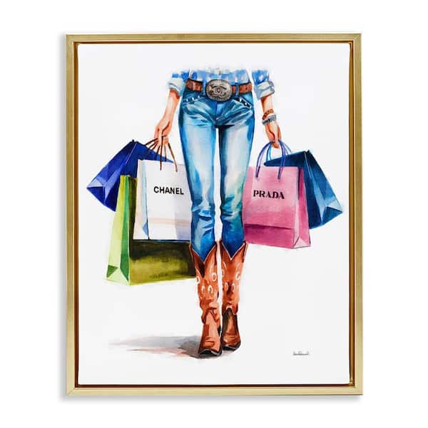 Country Girl Shopping Bags by Amanda Greenwood Gold Floater Frame People Graphic Art Print 21 in. x 17 in.