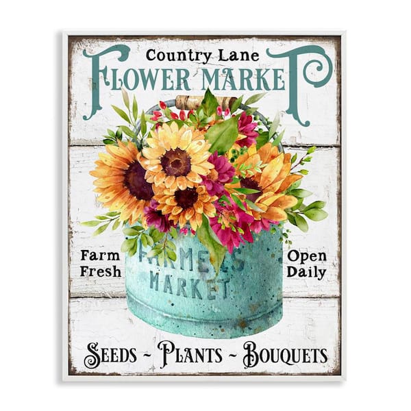 Country Lane Flower Market by Creatif Belle White Framed Nature Giclee Art Print 14 in. x 11 in.