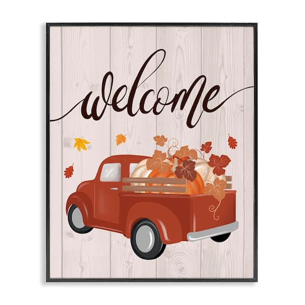 Country Pumpkin Harvest Welcome by Jo Taylor Black Framed Graphic Typography Art Print 30 in. x 24 in.