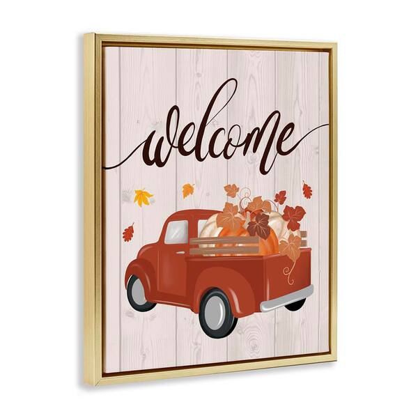 Country Pumpkin Harvest Welcome by Jo Taylor Gold Floater Frame Graphic Typography Art Print 31 in. x 25 in.