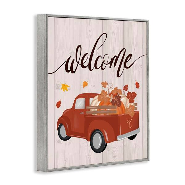 Country Pumpkin Harvest Welcome by Jo Taylor Gray Framed Graphic Typography Art Print 11 in. x 14 in.