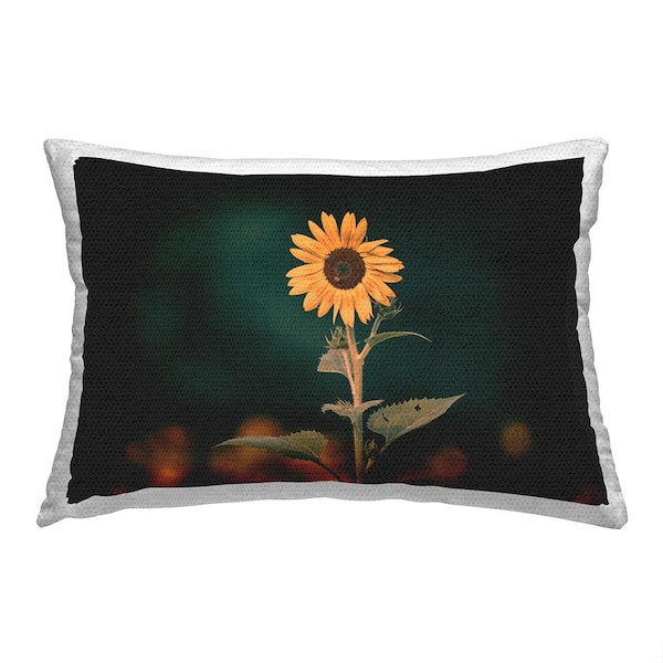 Country Sunflower Bloom Black Rectangular Outdoor Throw Pillow